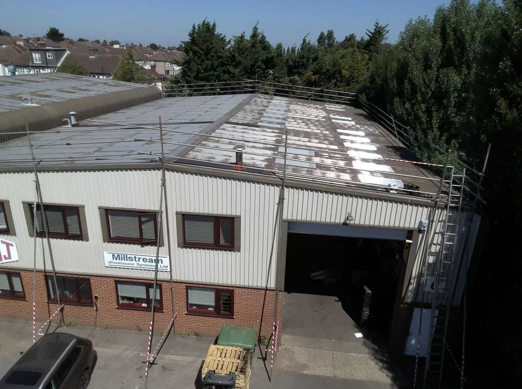 Roof repair works to an empty retail/industrial unit in Southampton, Hampshire